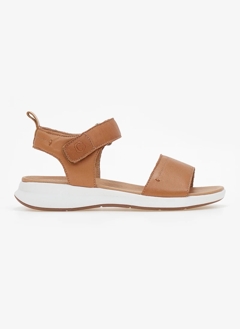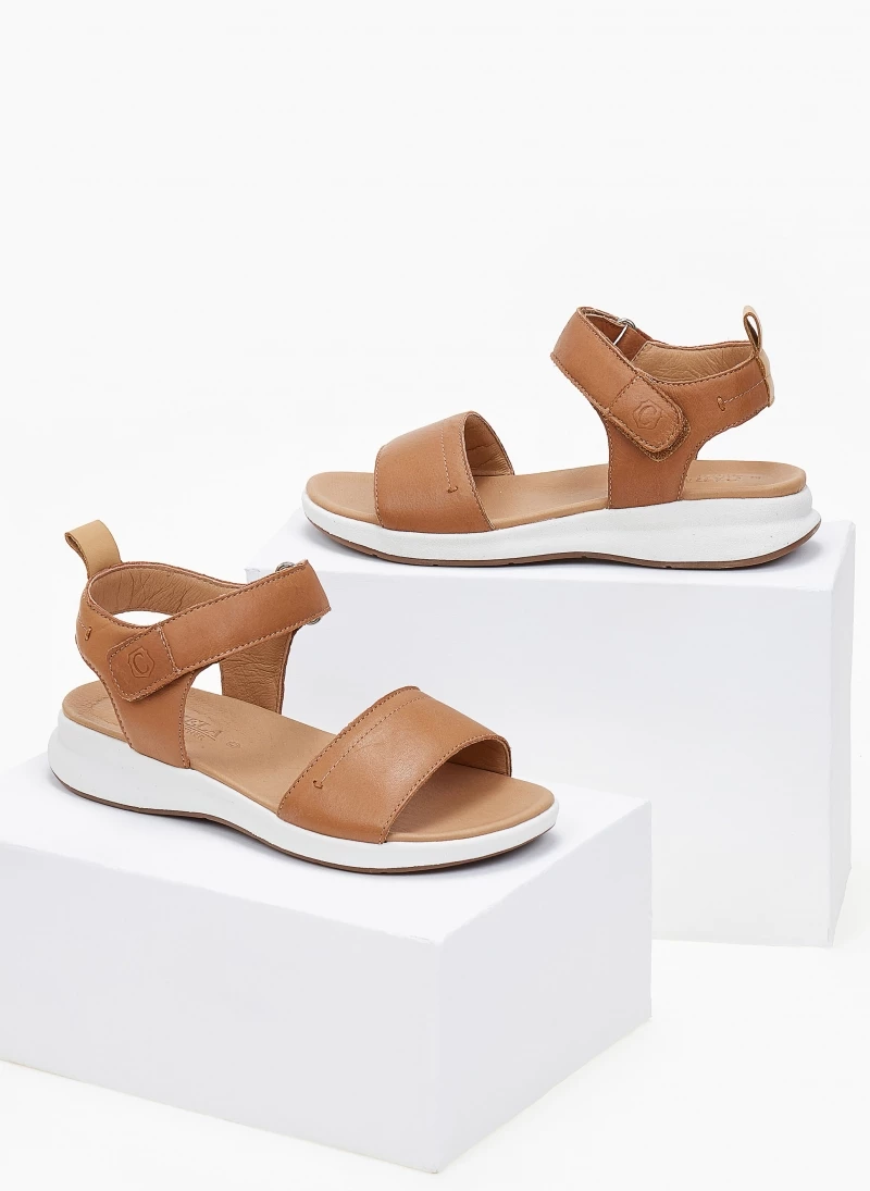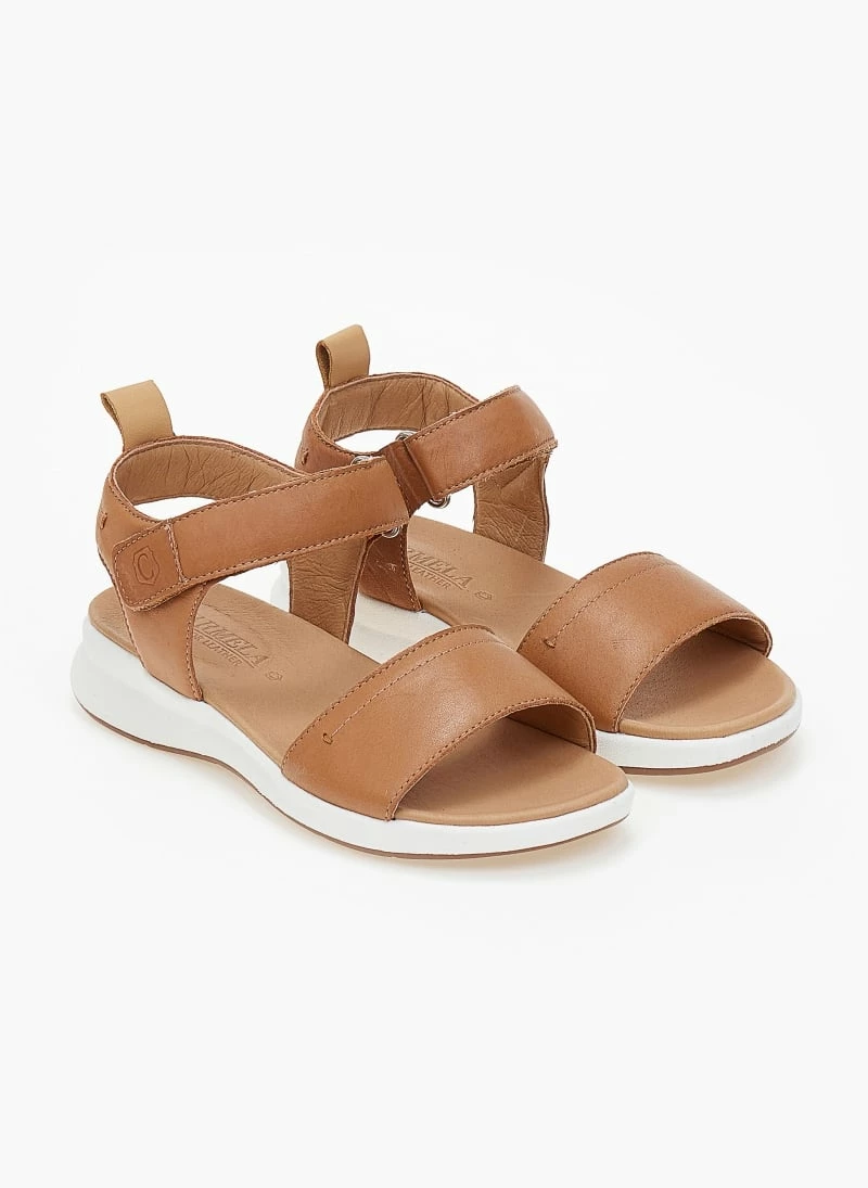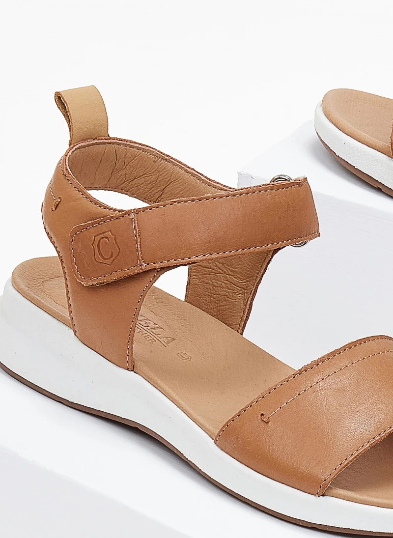 Comfort πέδιλα δερμάτινα με Velcro CARMELA 68512 – Κάμελ