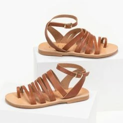 Estil δερμάτινα ίσια πέδιλα με λεπτά λουράκια. Δένουν στο ύψος του αστραγάλου. Ελληνικής κατασκευής, χειροποίητα.