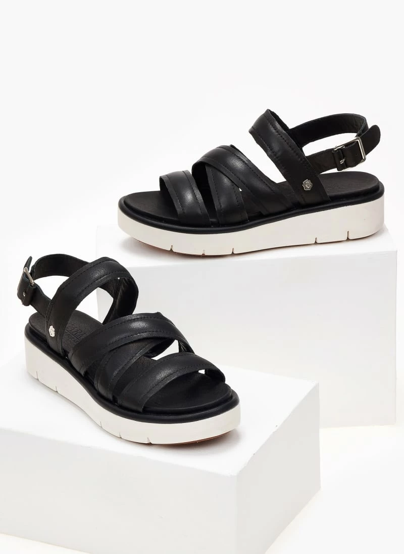 Flatform δερμάτινα πέδιλα CARMELA 68418 – Μαύρο