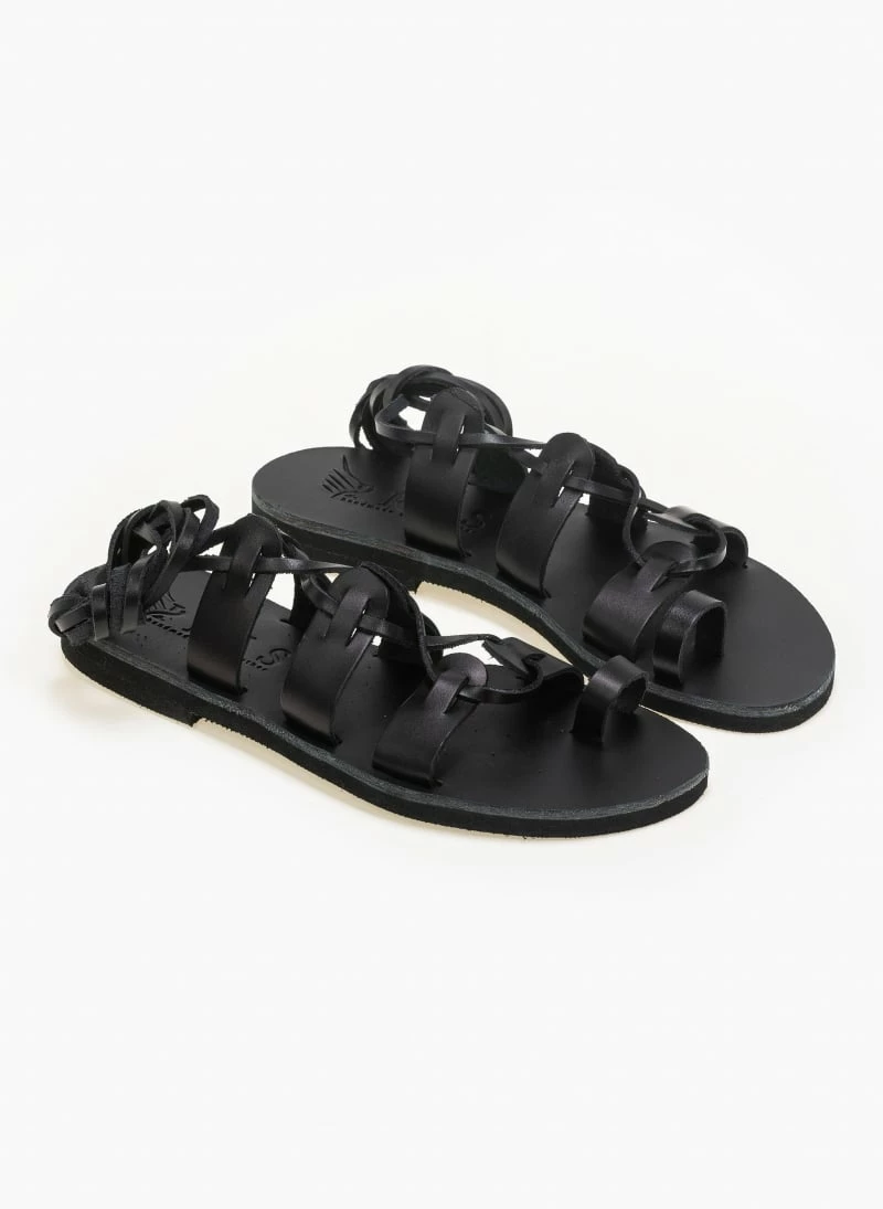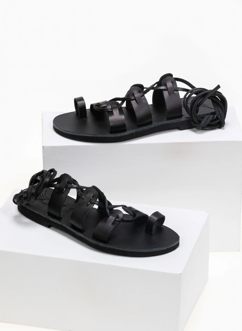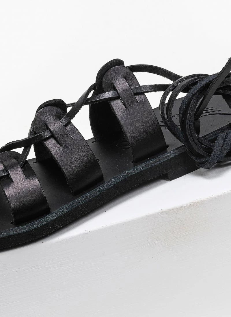 Δερμάτινα ίσια lace up πέδιλα. Δένουν με κορδόνια στη γάμπα. Ελληνικής κατασκευής, χειροποίητα.