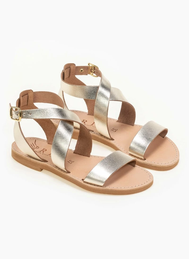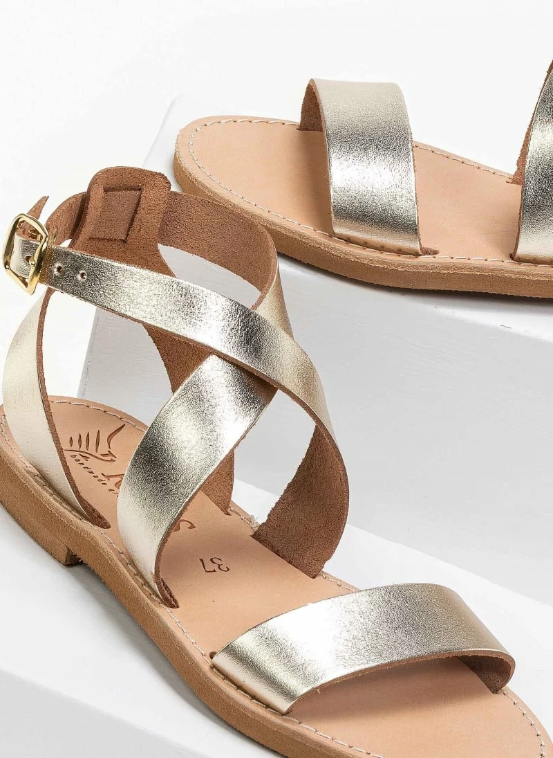 IRIS Πέδιλα ίσια χειροποίητα δερμάτινα – Χρυσό