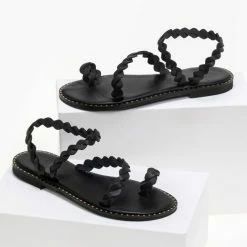 IRIS Πέδιλα ίσια δερμάτινα με περαστό λουράκι – Μαύρο