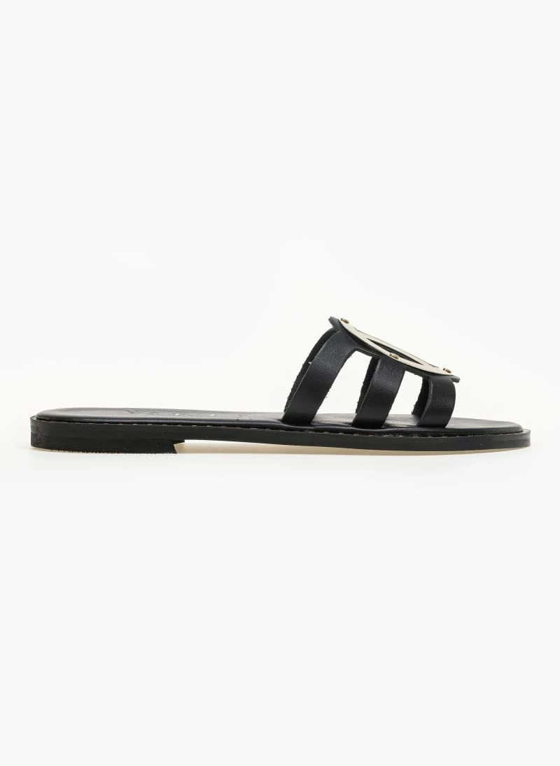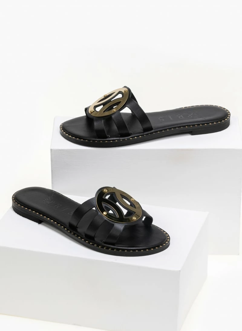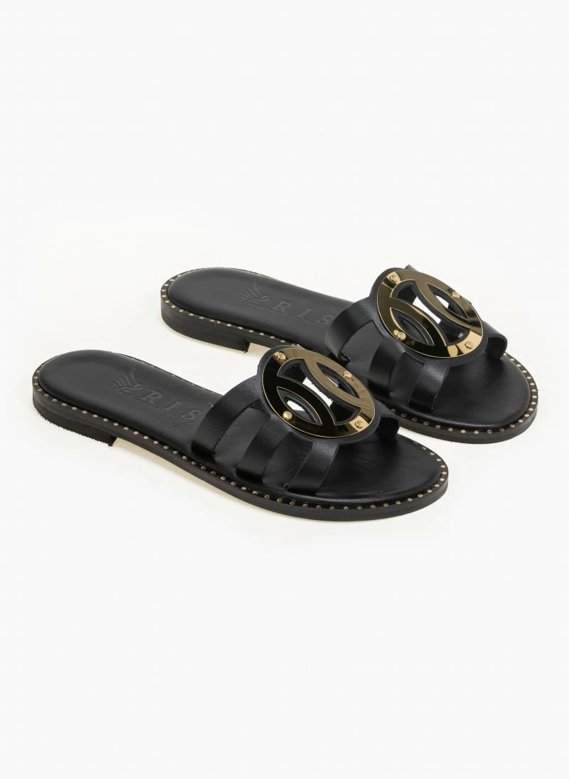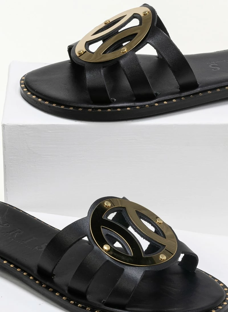 IRIS Σανδάλια δερμάτινα με στρογγυλή αγκράφα – Μαύρο