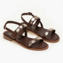 Πέδιλα δερμάτινα Estil με μεταλλικά στοιχεία – Καφέ