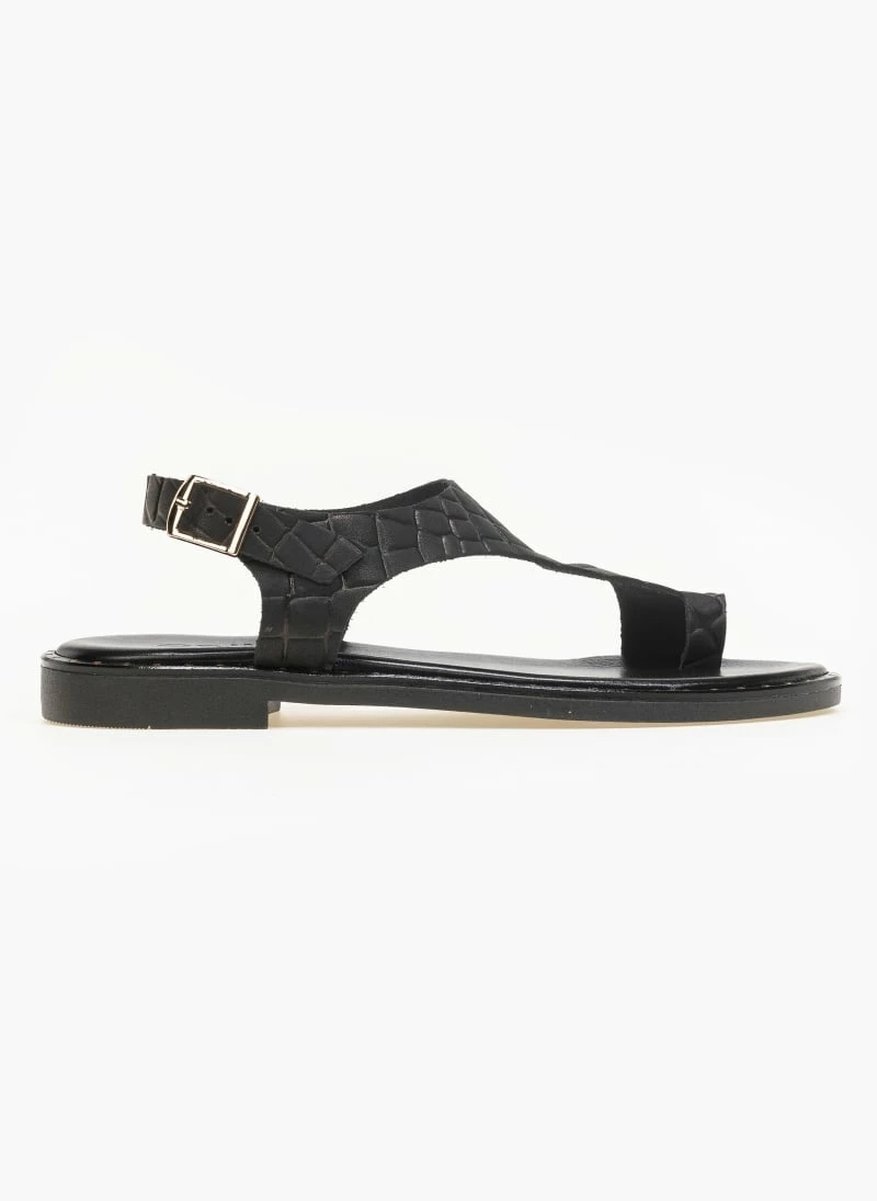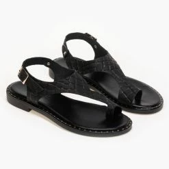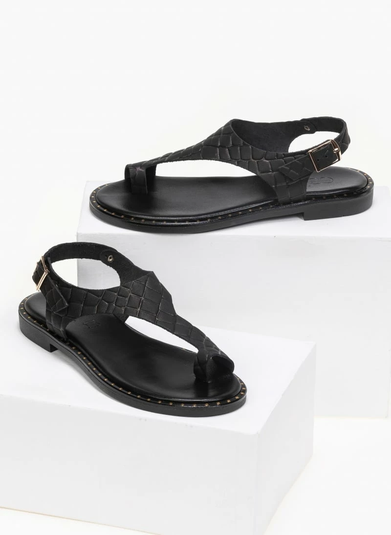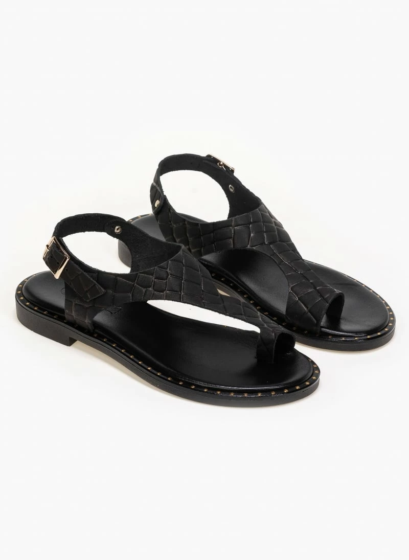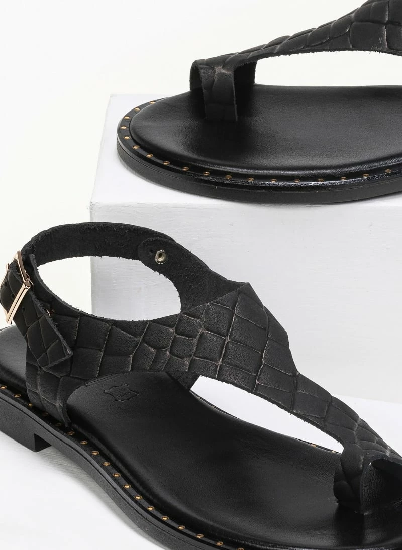 Πέδιλα Estil δερμάτινα κροκό φλατ – Μαύρο