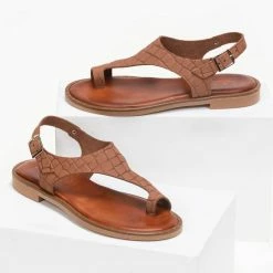 Πέδιλα Estil δερμάτινα κροκό φλατ – Ταμπά