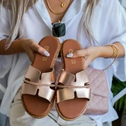 Σανδάλια δερμάτινα ESTIL με ανοίγματα και Strass – Χαλκός