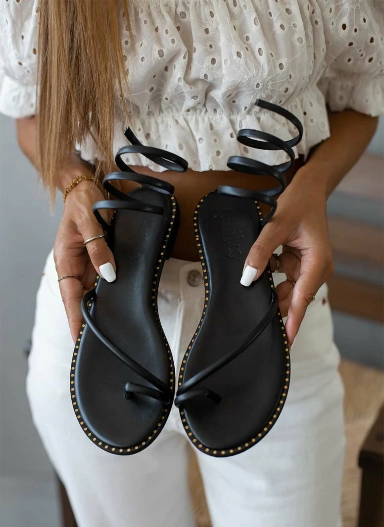 Σανδάλια δερμάτινα ESTIL με έλασμα – Μαύρο