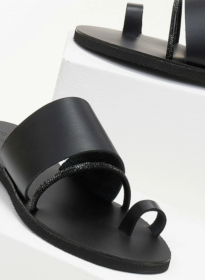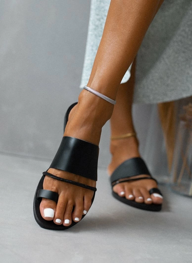 Σανδάλαι δερμάτινα ESTIL με φαρδιά φάσα. Έχουν λεπτομέρεια strass λουράκι. Ελληνικής κατασκευής.