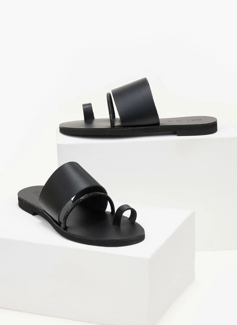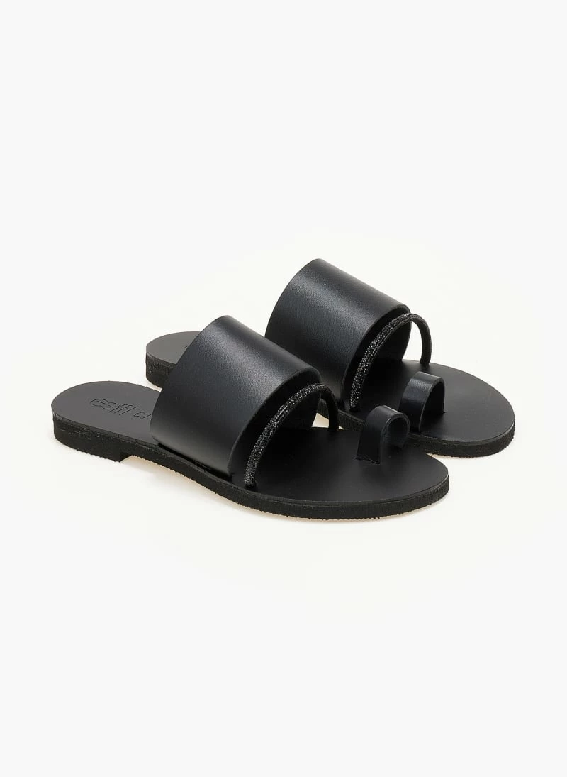 Σανδάλια δερμάτινα ESTIL με φαρδιά φάσα – Μαύρο