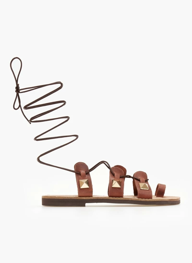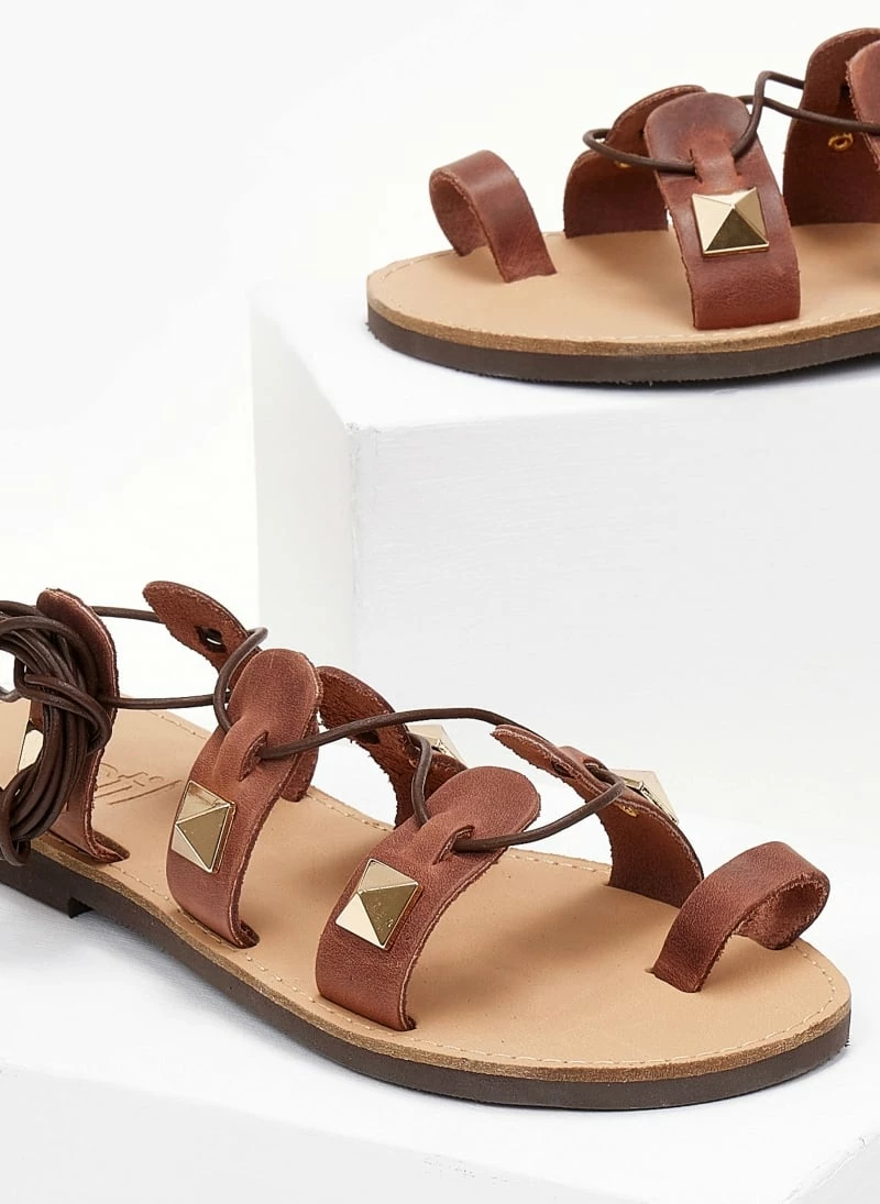 Σανδάλια δερμάτινα ESTIL με lace up δέσιμο. Έχουν διακοσμητικά μεταλλικά στοιχεία. Ελληνικής κατασκευής.