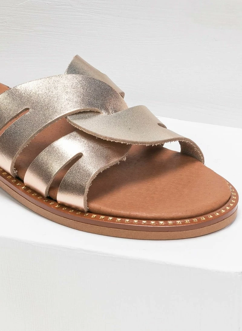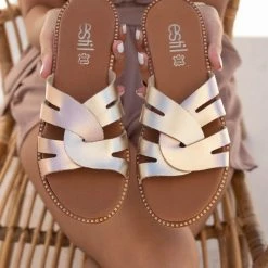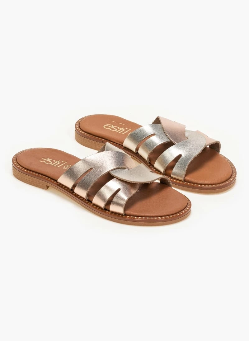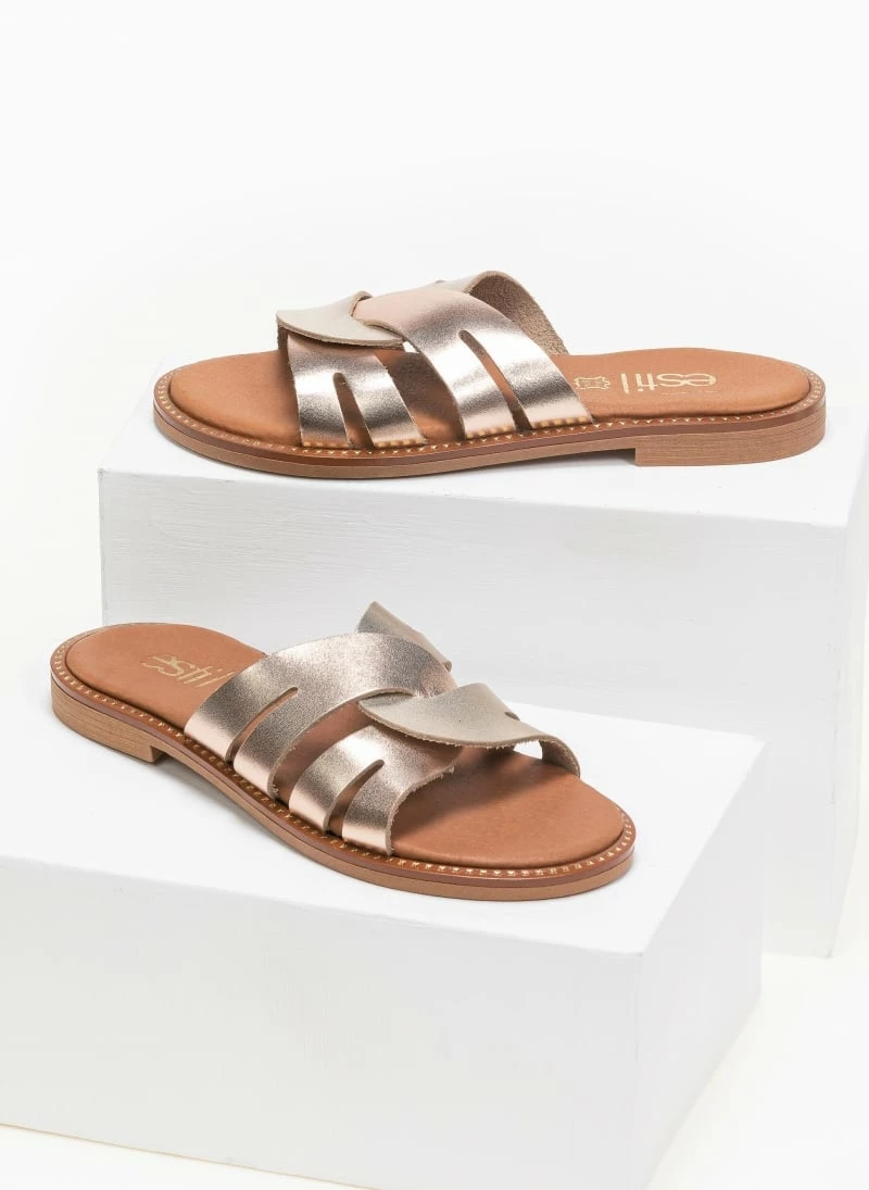 Σανδάλια δερμάτινα Estil με περαστές φάσες – Χρυσό
