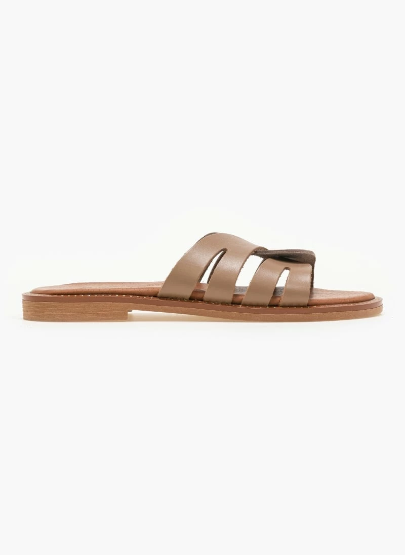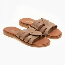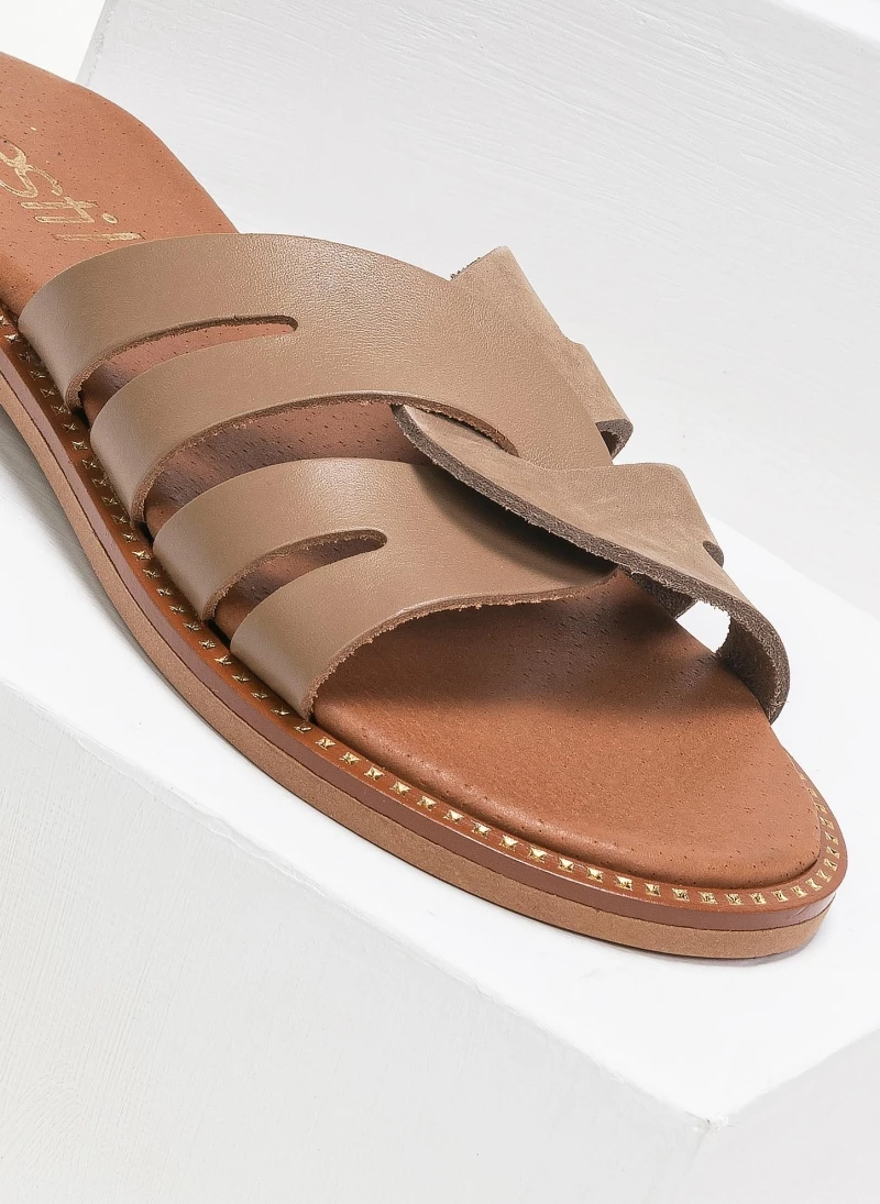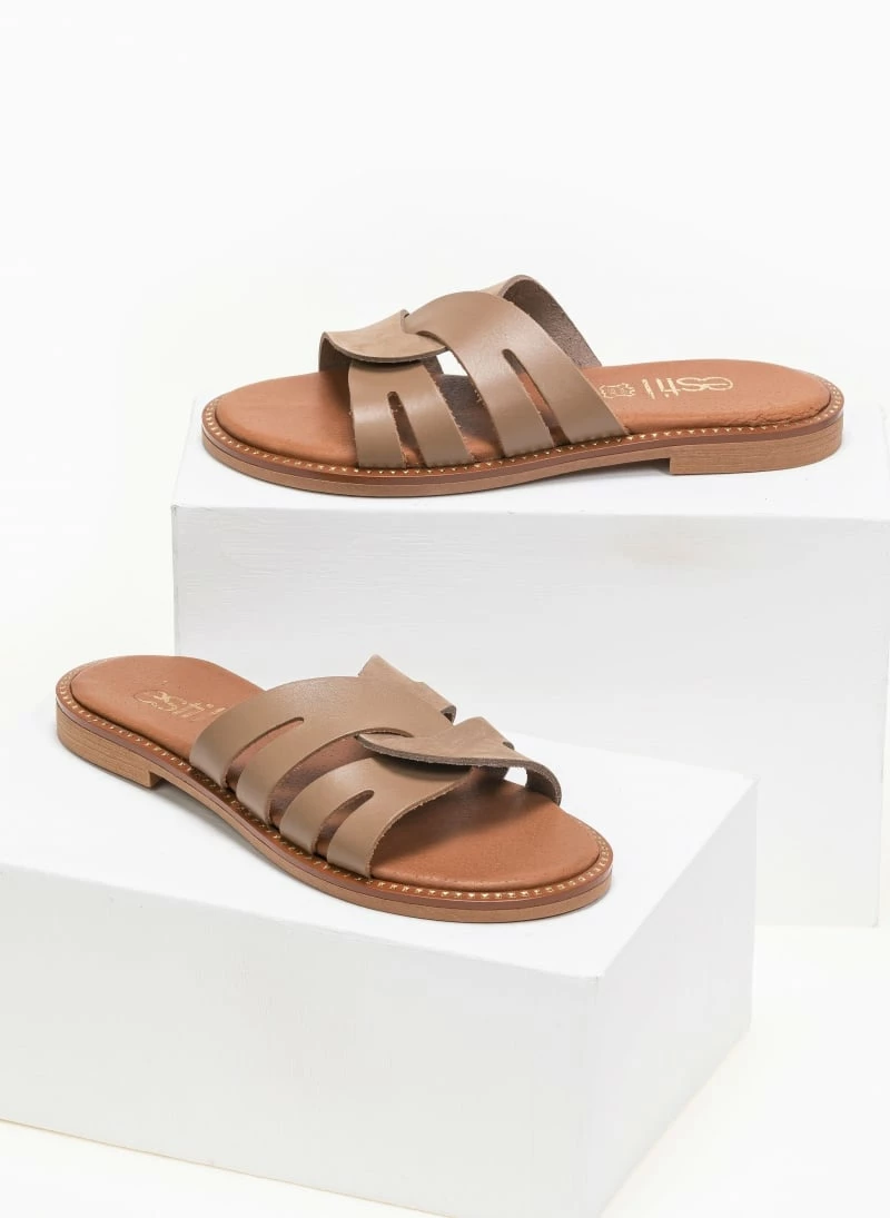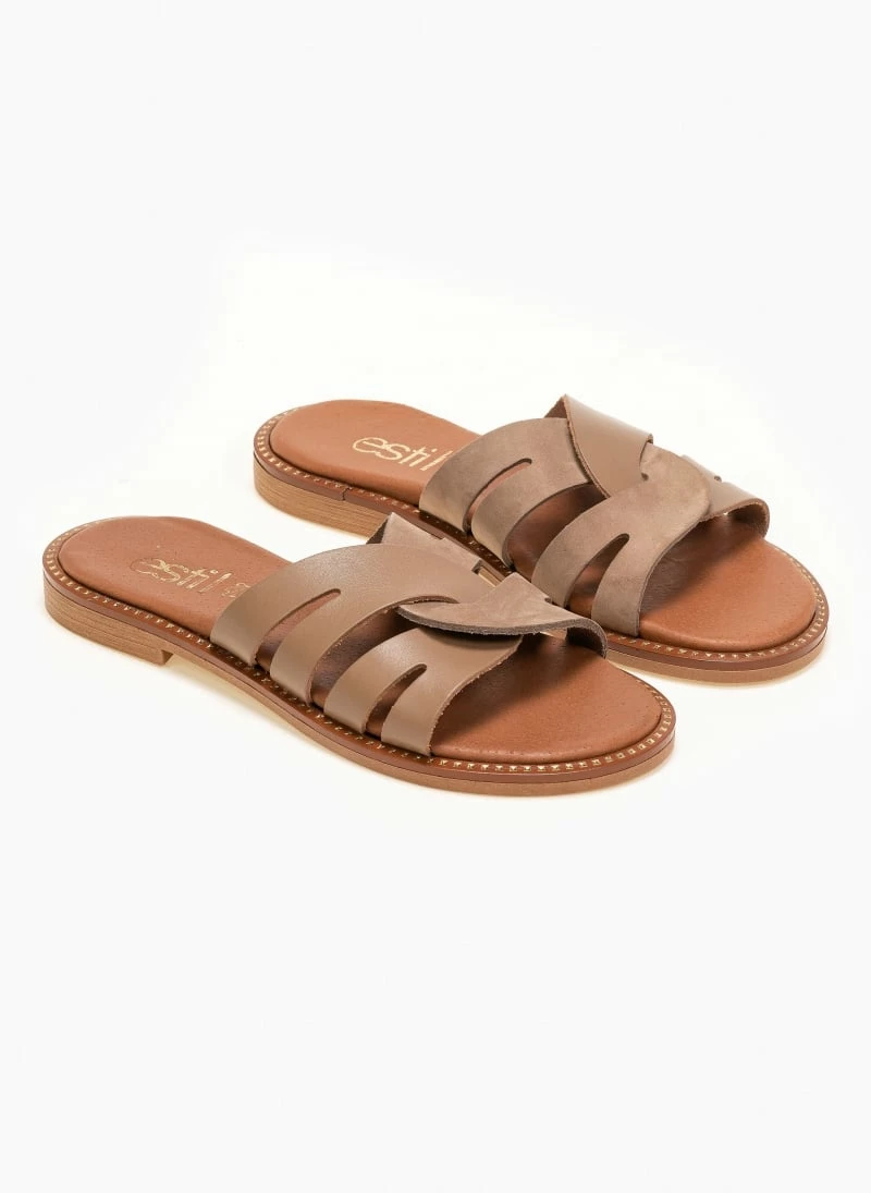 Σανδάλια δερμάτινα Estil με περαστές φάσες – Μπεζ