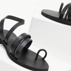 Σανδάλια δερμάτινα ESTIL με Strass λεπτομέρεια – Μαύρο