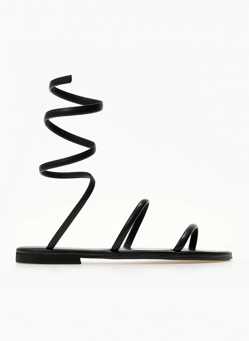 Σανδάλια δερμάτινα IRIS με ιδιαίτερο δέσιμο – Μαύρο