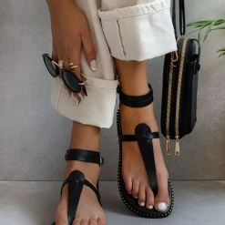 Δερμάτινα σανδάλια Estil με Strass λουράκια - Μαύρο
