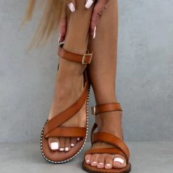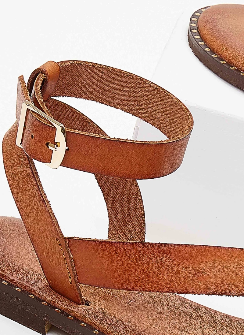 Σανδάλια δερμάτινα IRIS με μπαρέτα – Ταμπά