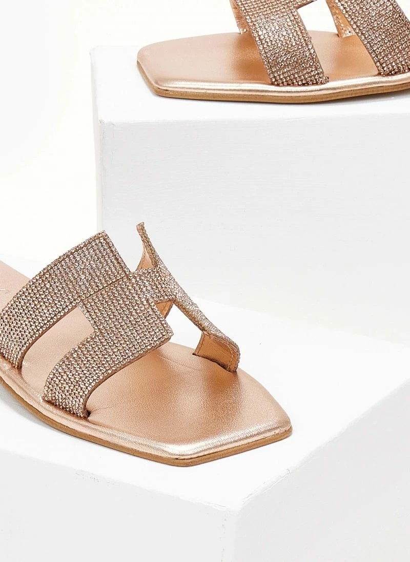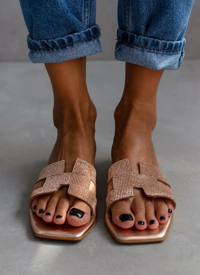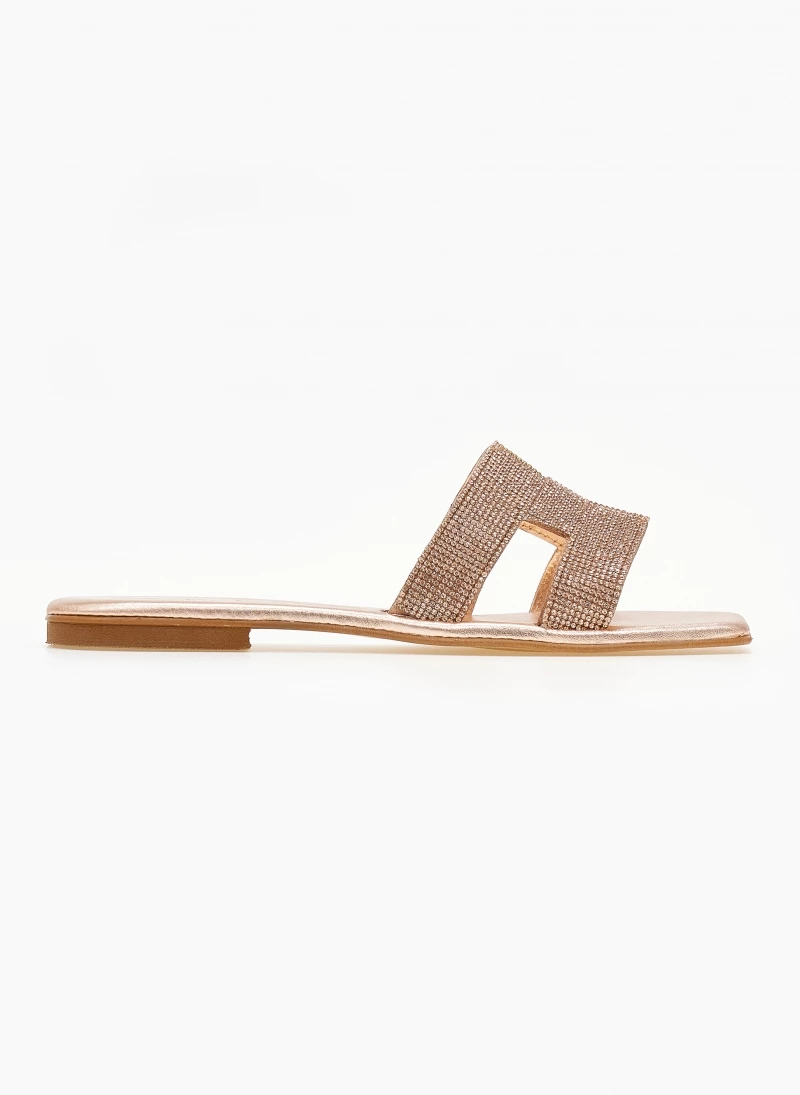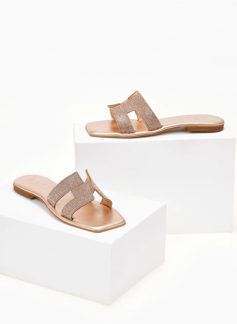 Σανδάλια δερμάτινα IRIS με Strass – Χαλκός