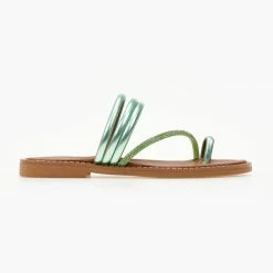 Σανδάλια δερμάτινα TFP με λοξό Strass λουράκι – Πράσινο