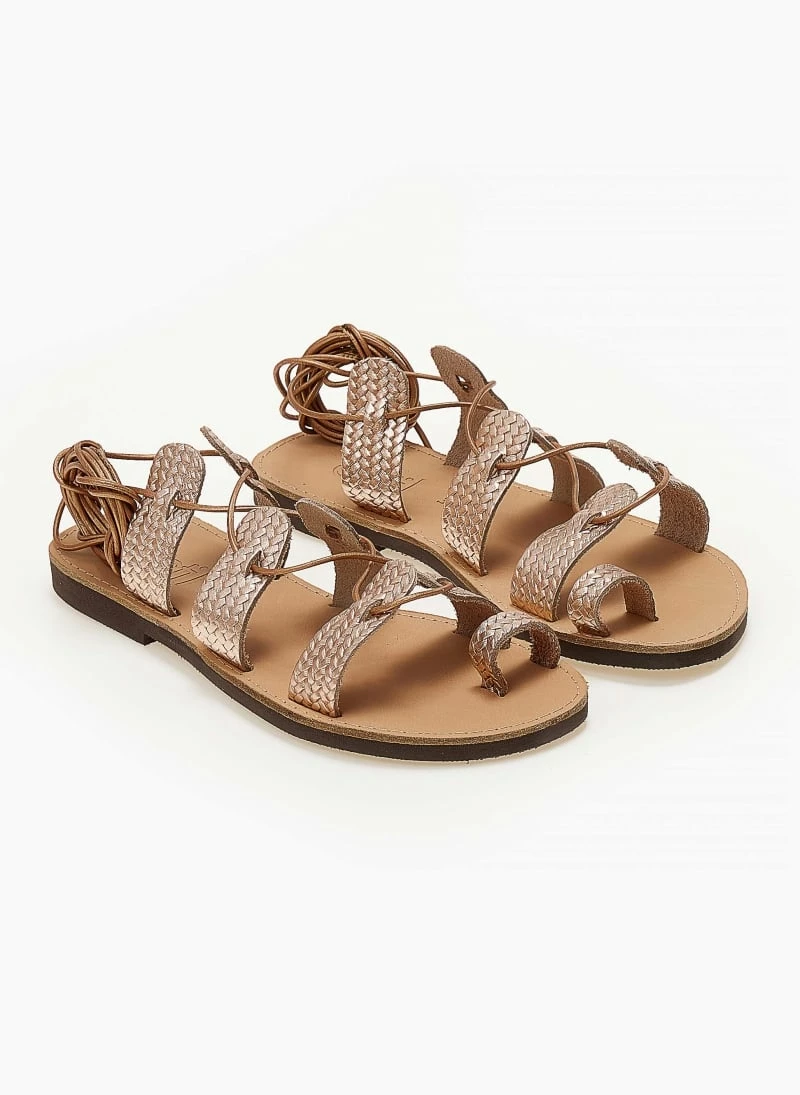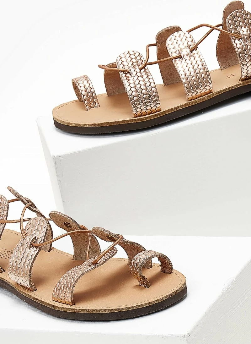 Σανδάλια ESTIL δερμάτινα με Pattern ψάθα – Χαλκός