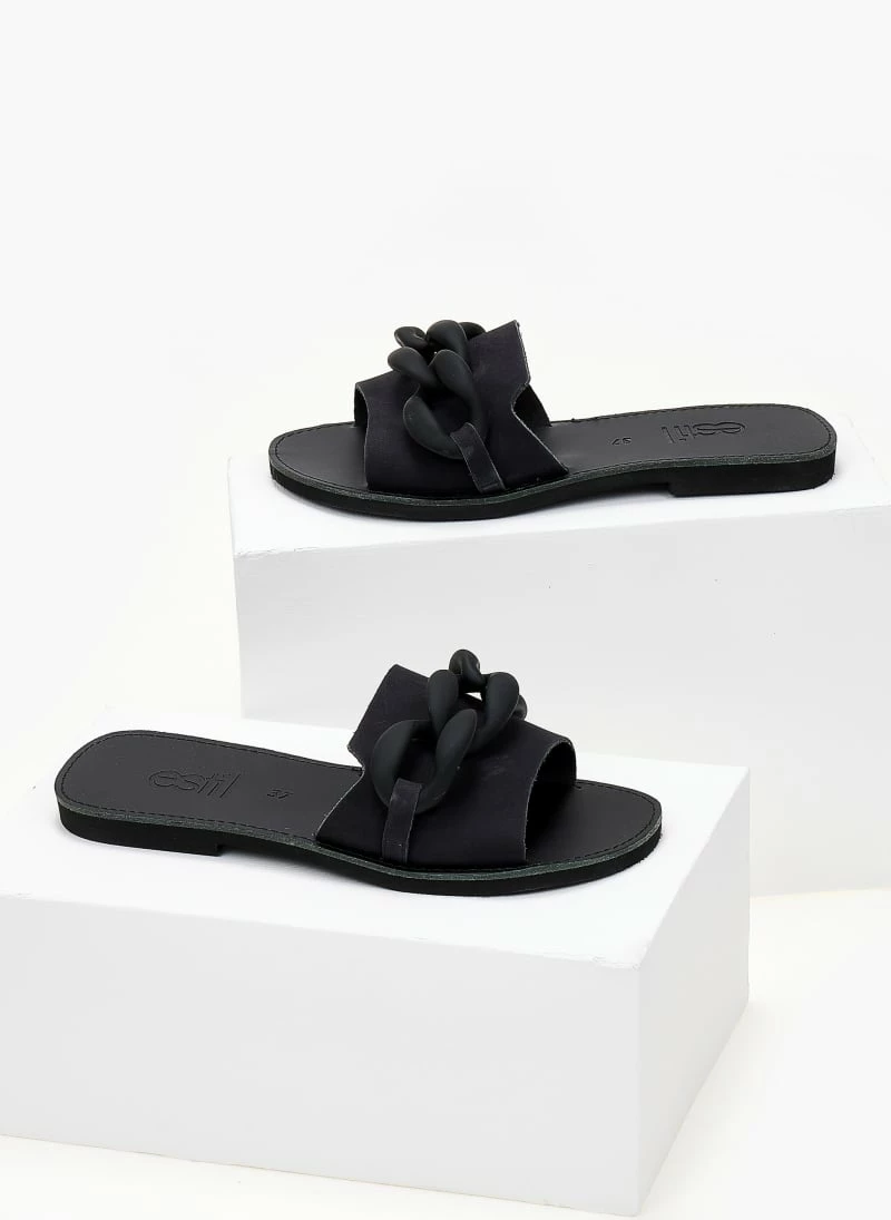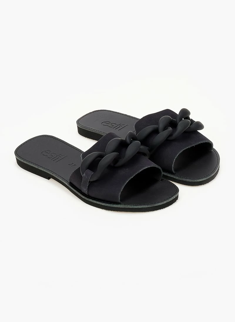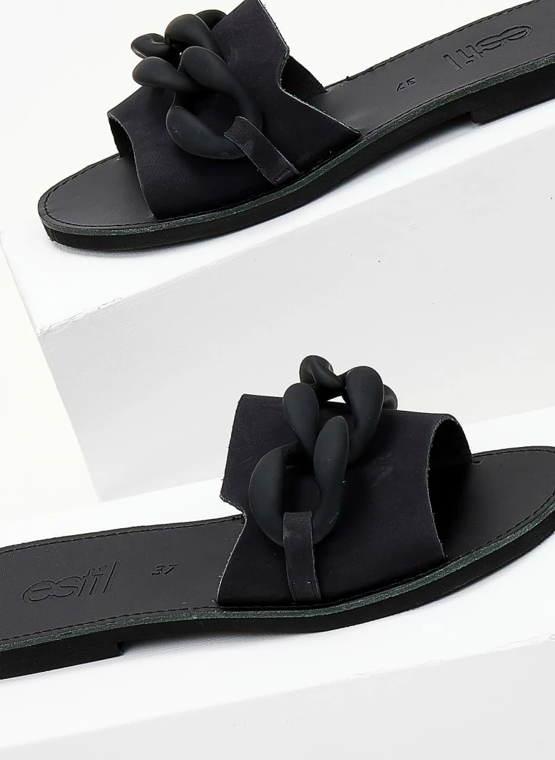 Σανδάλια Nubuck Estil με ματ κοκάλινη αλυσίδα – Μαύρο