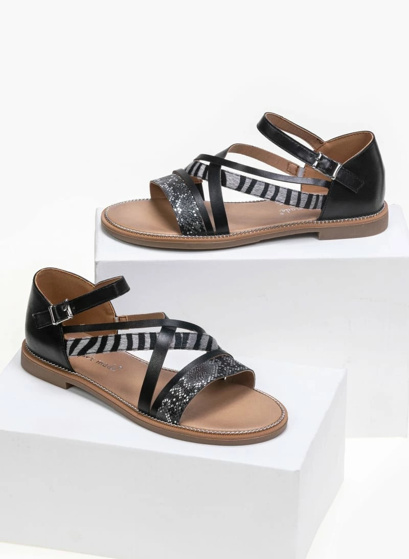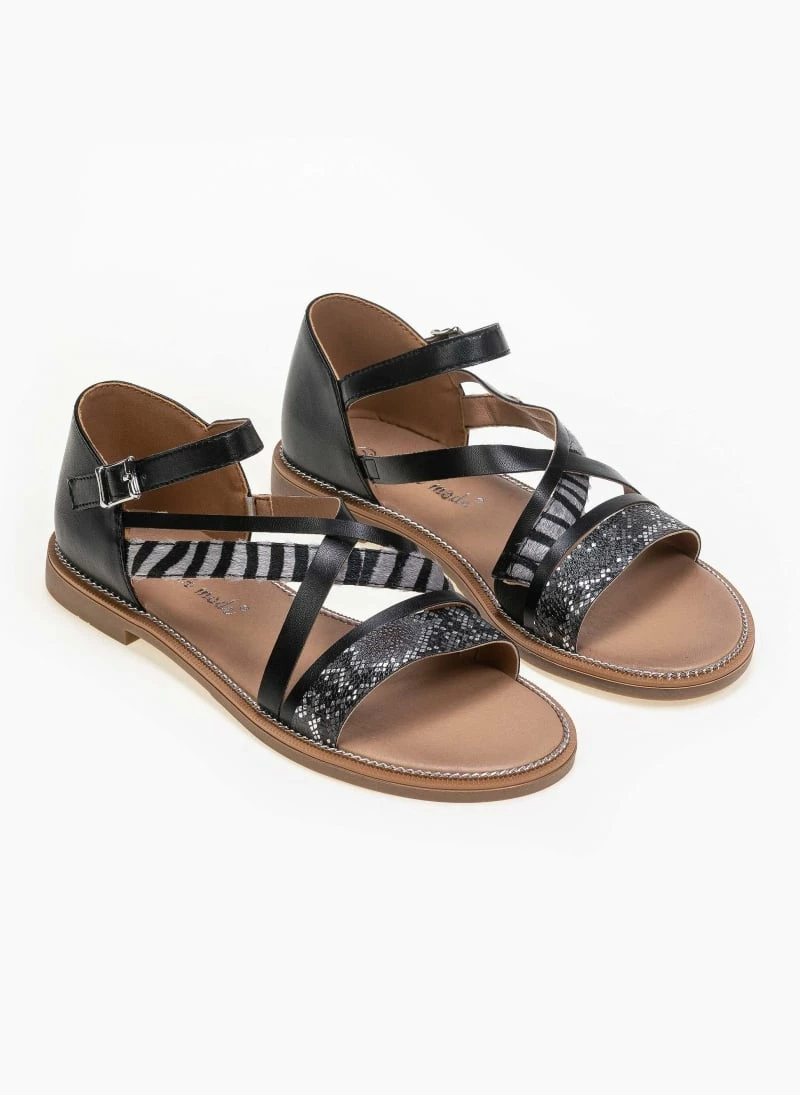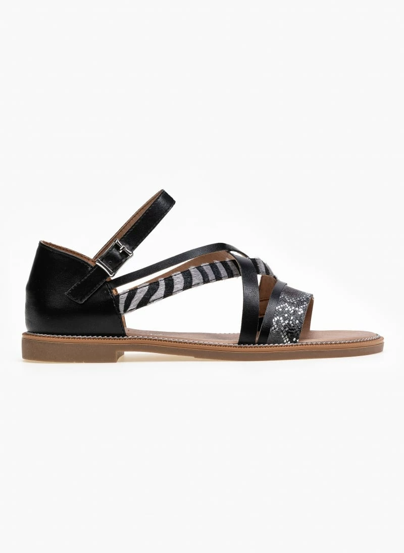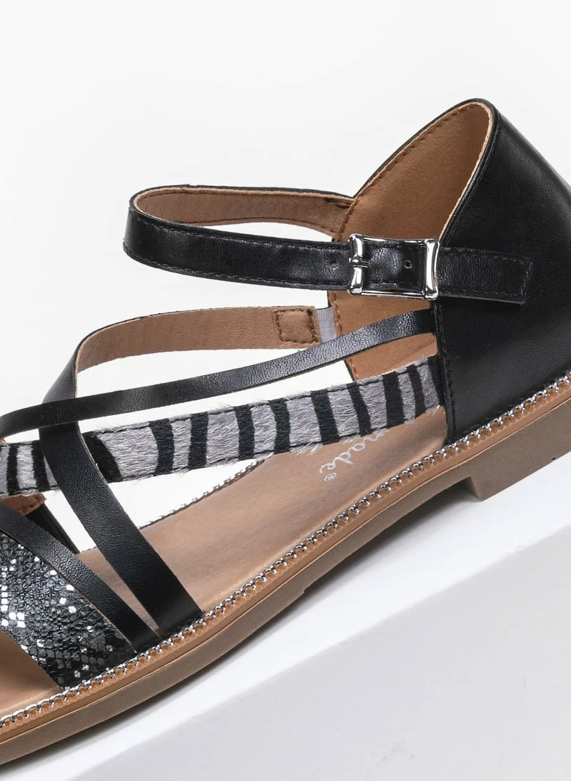 The Fashion Project Πέδιλα ίσια με Animal Print λουράκια – Μαύρο