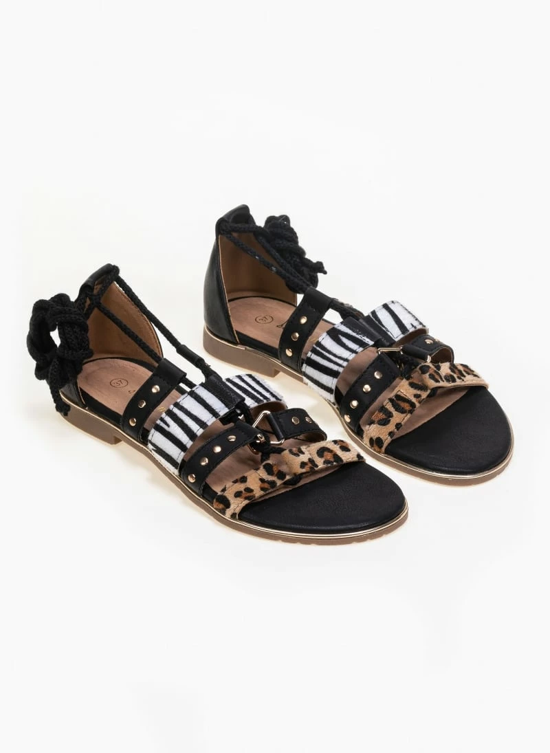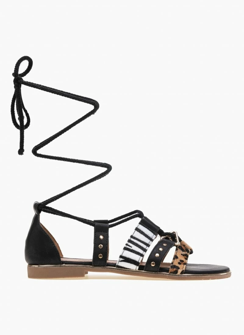 The Fashion Project Πέδιλα Lace Up με Animal Print σχέδιο – Μαύρο