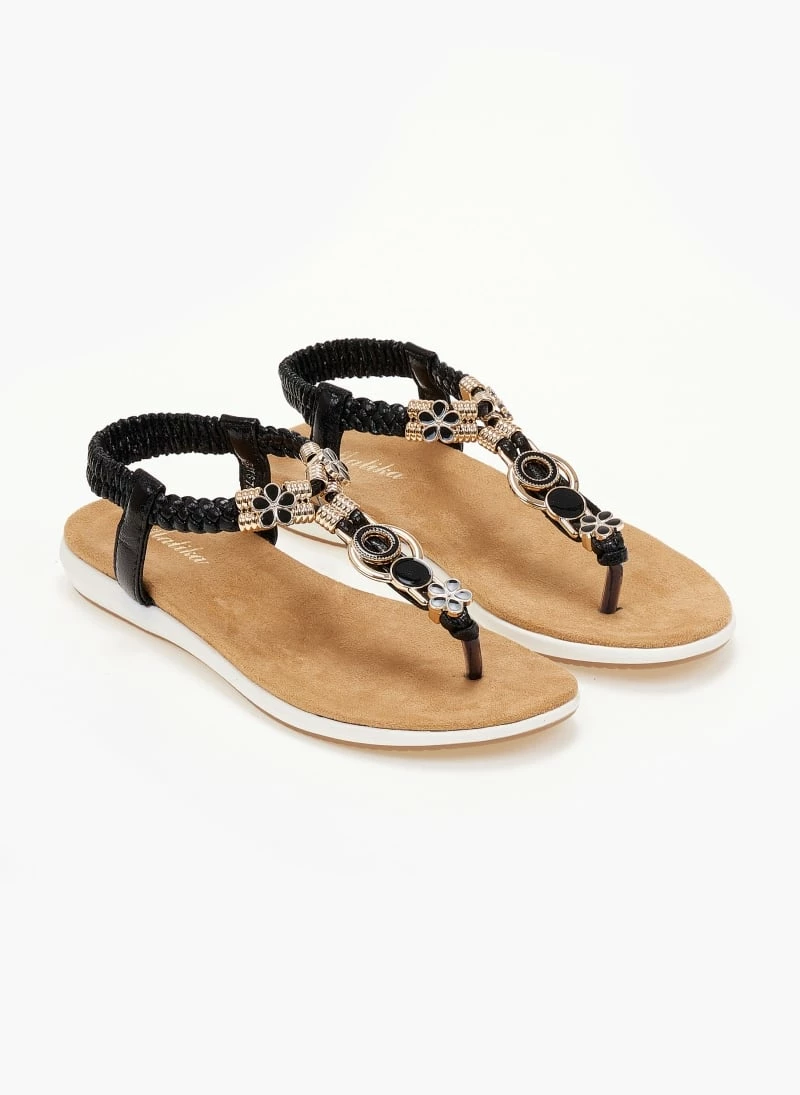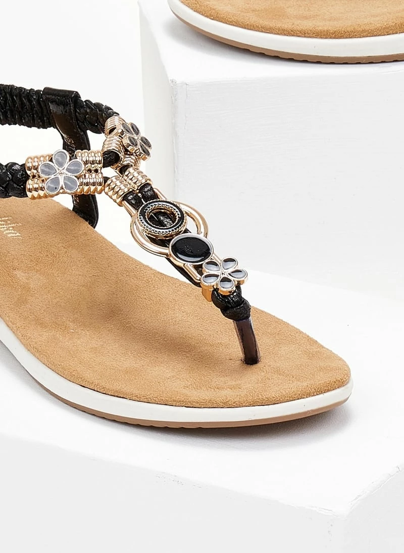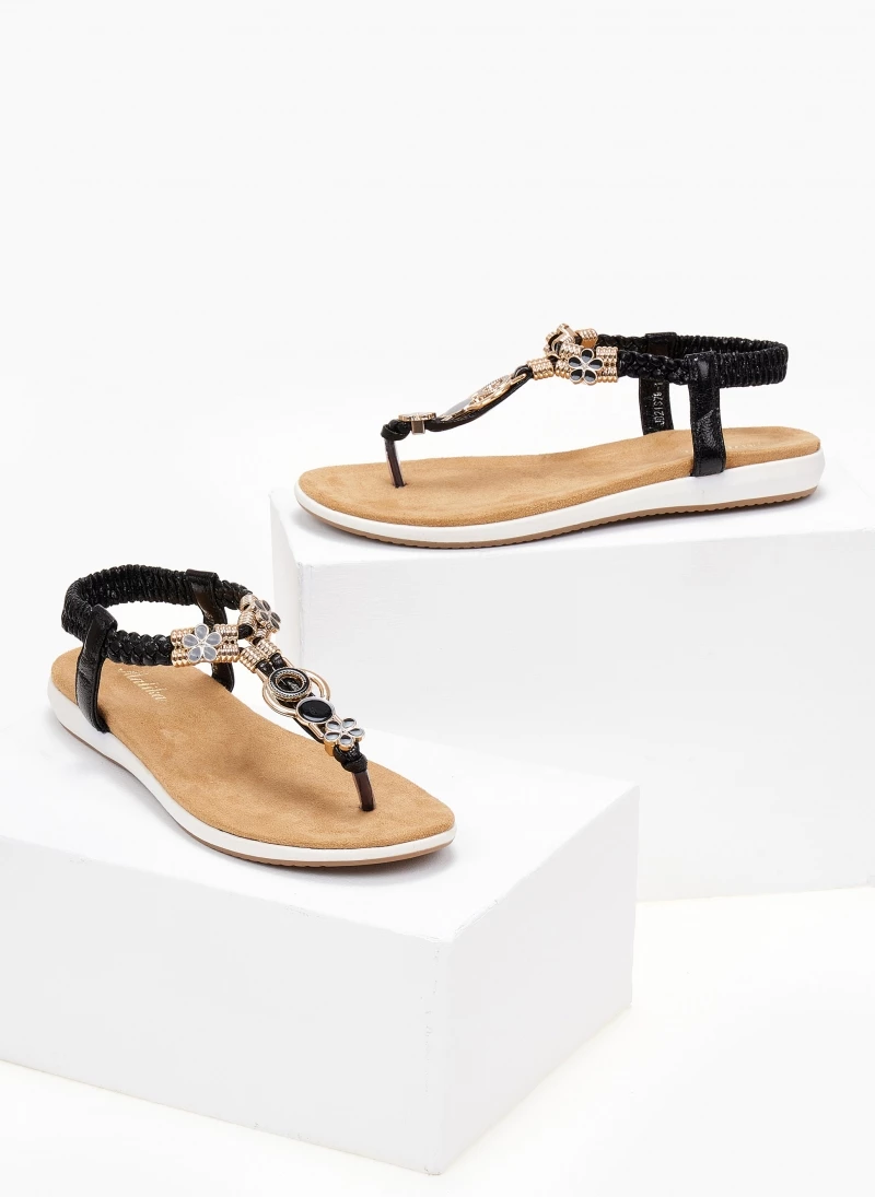 Σανδάλια comfort με μεταλλικά στοιχεία. Ελαστικό πίσω μέρος για καλύτερη εφαρμογή. Μαλακή σόλα από λάστιχο.