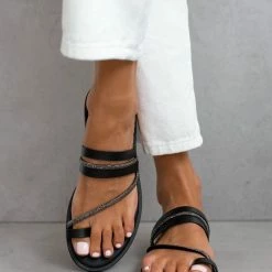 The Fashion Project Σανδάλια δερμάτινα Estil με Strass και λουράκια – Μαύρο