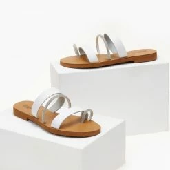 The Fashion Project Σανδάλια ESTIL δερμάτινα με λεπτές φάσες και Strass – Λευκό