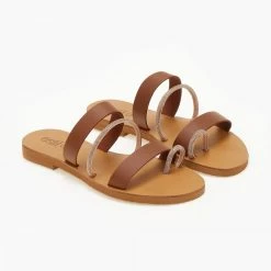 ESTIL δερμάτινα σανδάλια με τρείς φάσες. Έχουν λεπτή σειρά strass στή μεσαία φάσα και στο δάχτυλο. Γνήσιο δέρμα. ΄Ελληνικής κατασκευής.