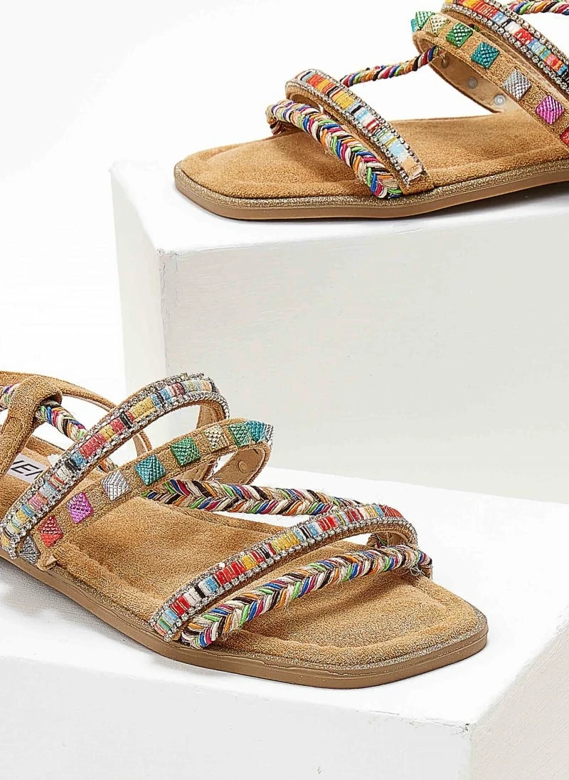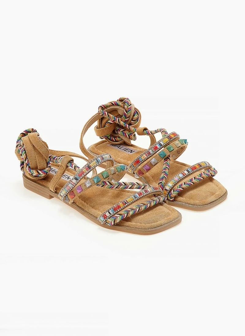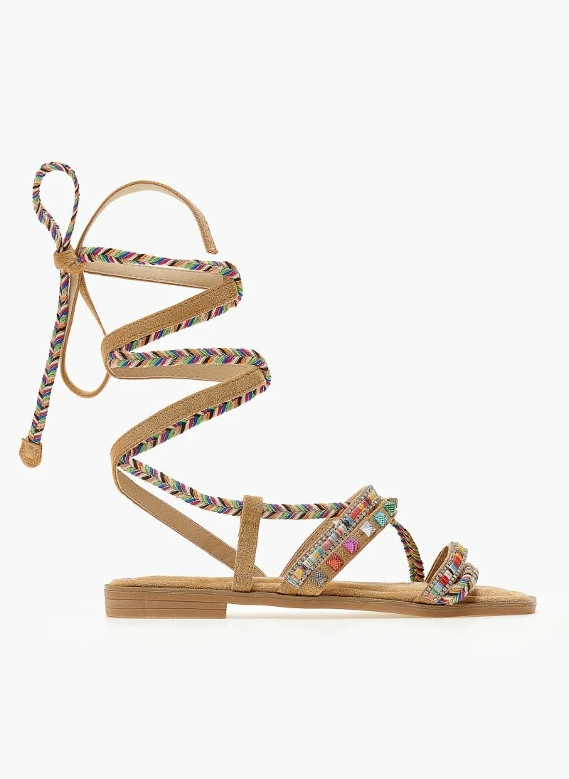 The Fashion Project Σανδάλια Lace Up με χρωματιστά τρουκς – Κάμελ