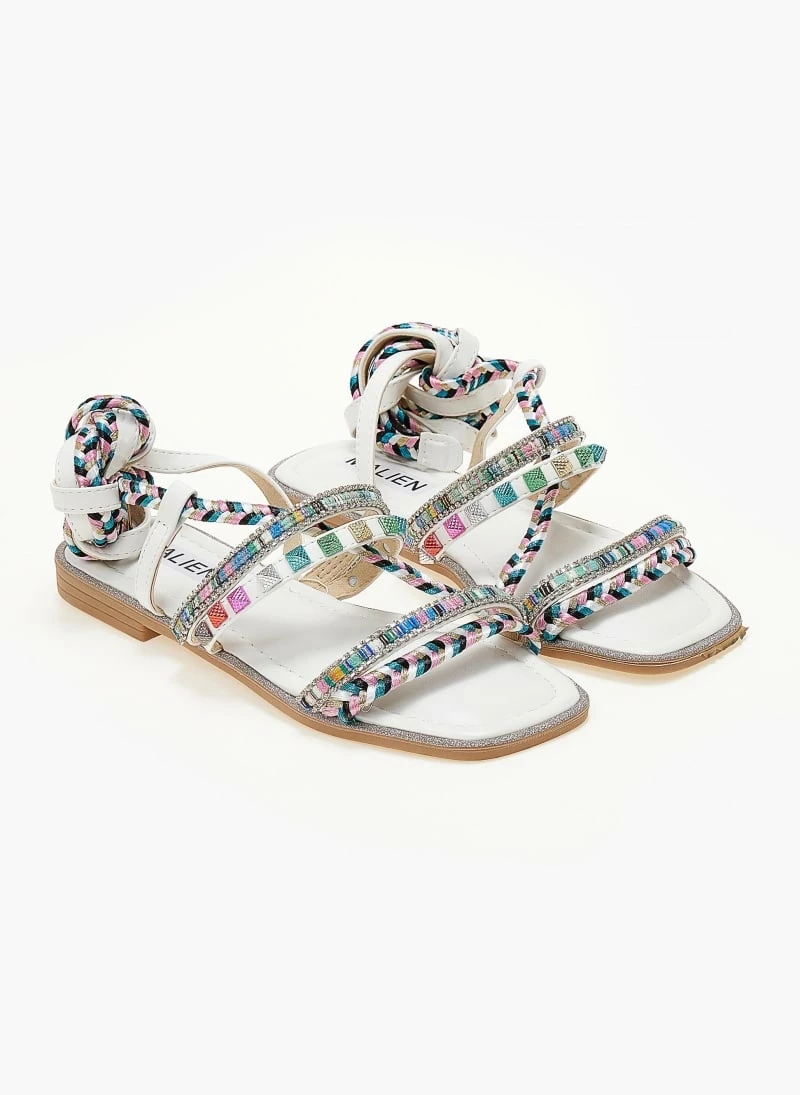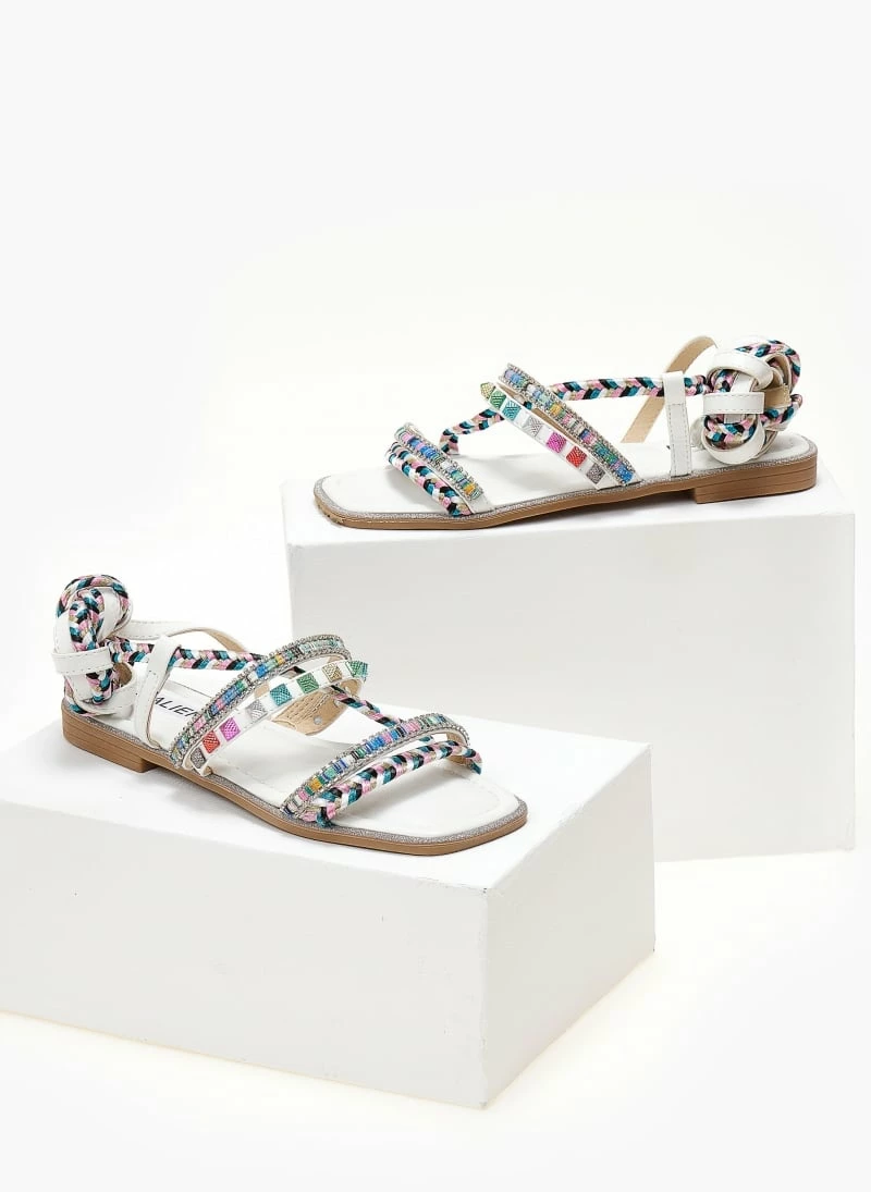The Fashion Project Σανδάλια Lace Up με χρωματιστά τρουκς – Λευκό