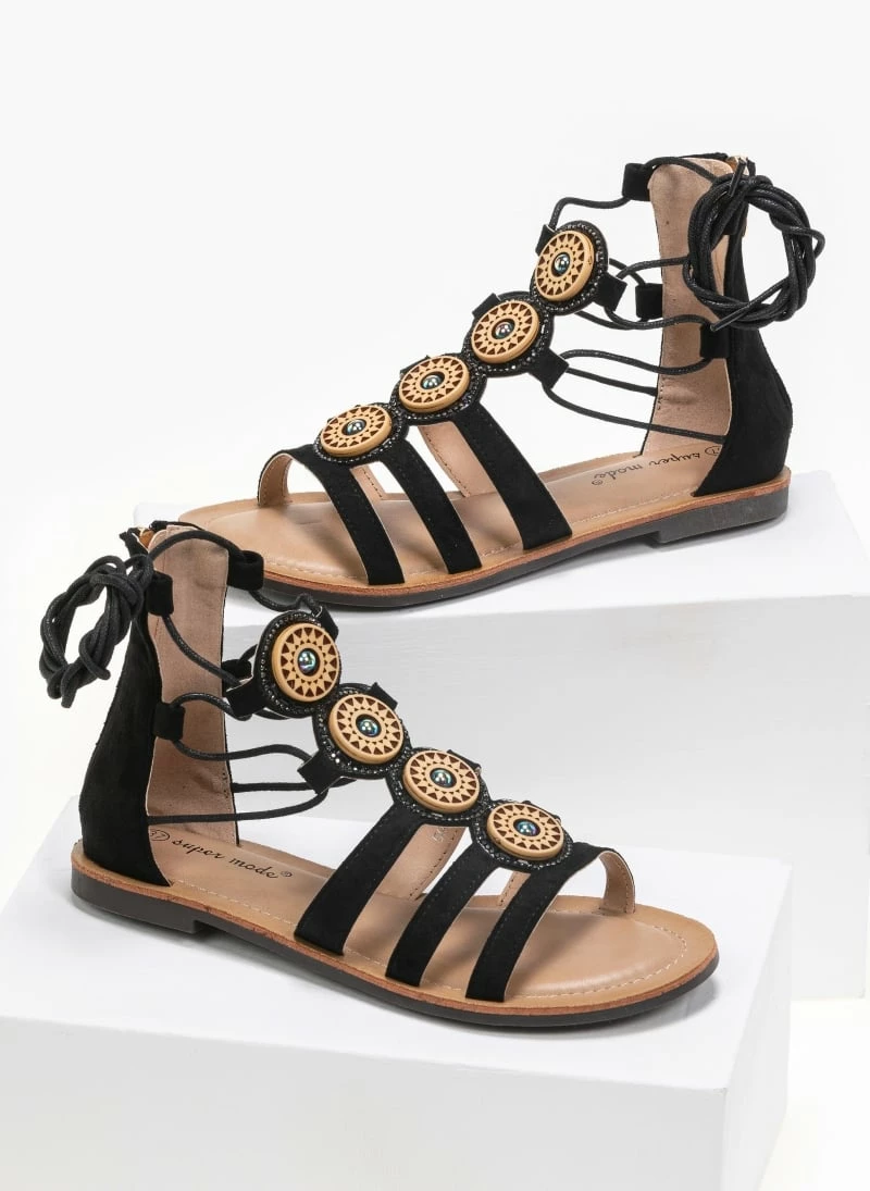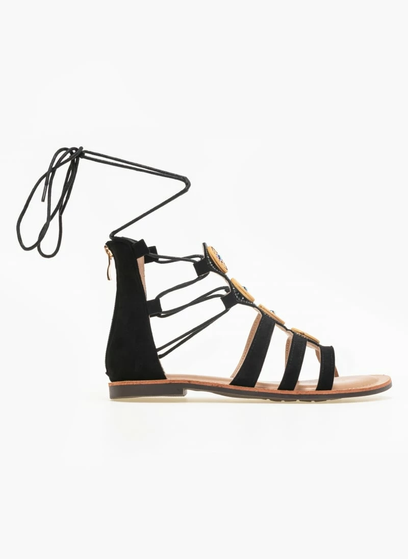 The Fashion Project Σανδάλια Lace Up με πέτρες – Μαύρο
