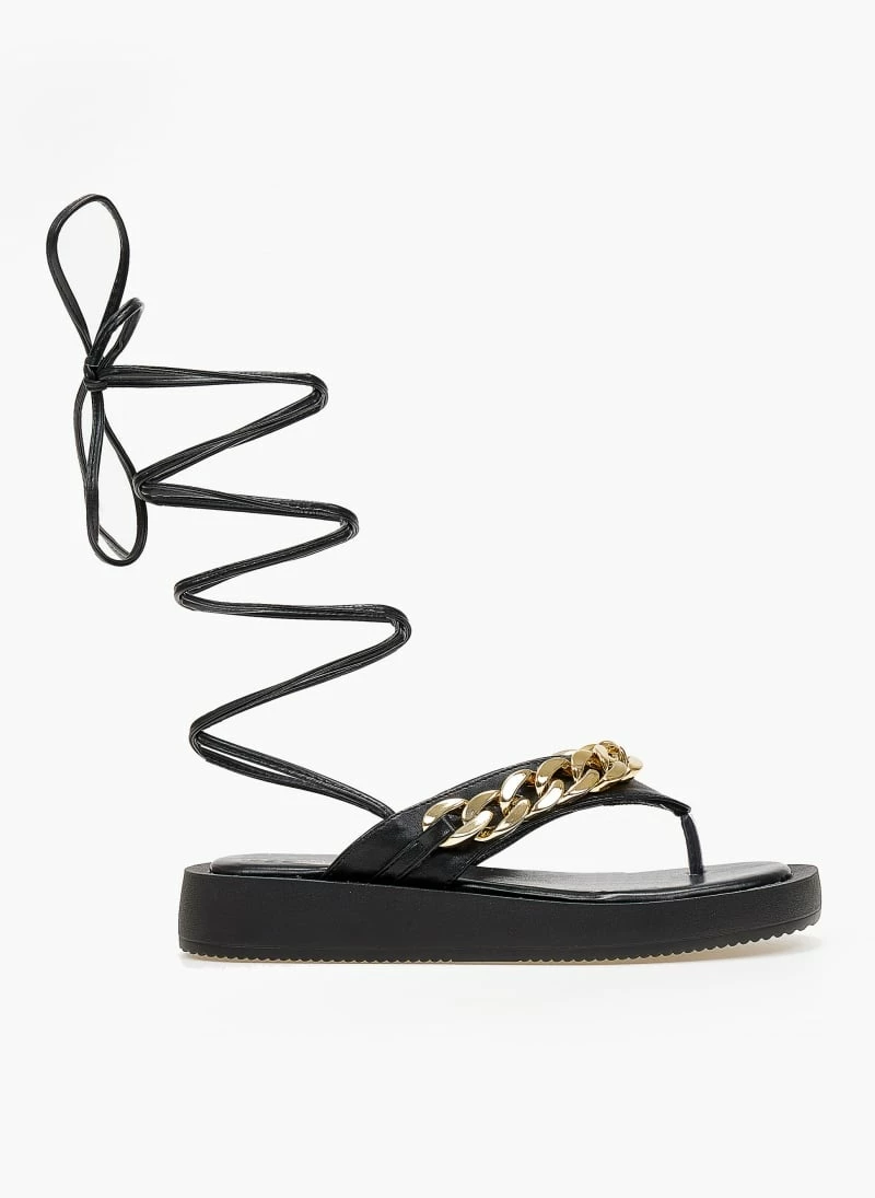 The Fashion Project Σανδάλια με αλυσίδα και κορδόνια – Μαύρο