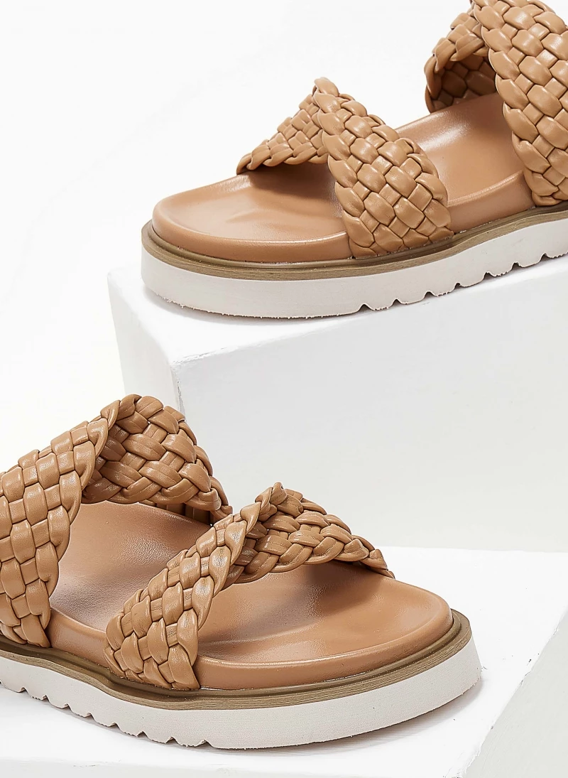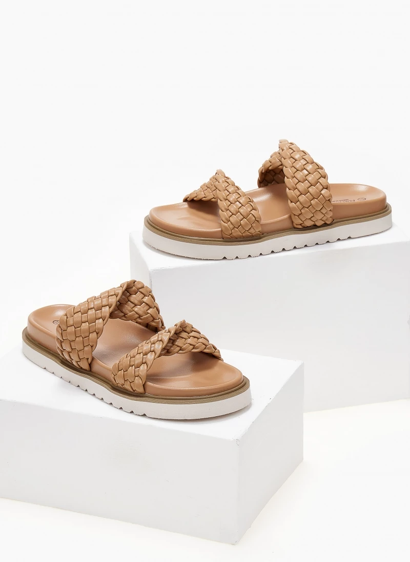 The Fashion Project Σανδάλια με πλεκτό σχέδιο στις φάσες – Κάμελ